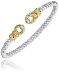 3MM Open Band Bracelet, 0.04CT 14KT Yellow Gold & Sterling Sliver