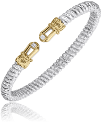 4MM Open Band Bracelet, 0.04CT 14KT Yellow Gold & Sterling Sliver
