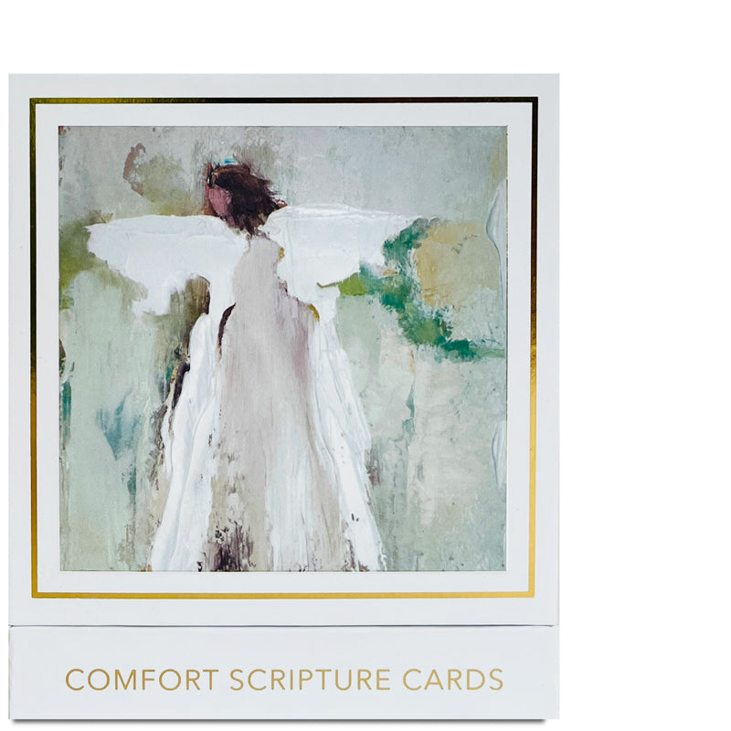 Designed to be a source of strength and comfort, Comfort Scripture Cards feature 26, 4x4 inch double-sided cards with an original Angel on one side, and a carefully chosen scripture verse on the other. Each set comes with one acrylic base for displaying the scripture cards.
