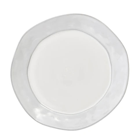 Azores, our new hand painted line, reminds us of the beautiful shimmering lagoons, and breathtaking waterfalls found on the magnificent Portugal islands of Azores. Artists carefully hand paint the borders of each plate using a matte glaze for Blue Lagoon and a beautiful light grey for Greige Shimmer. We have added coordinating striped salads and mugs to complete this beautiful line. Freezer, oven, microwave and dishwasher safe.