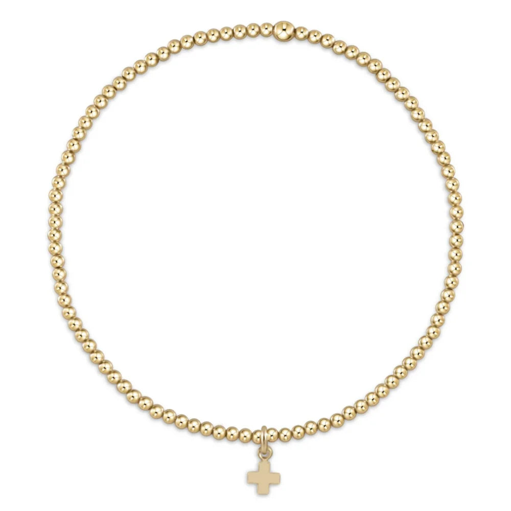 enewton egirl Classic Gold 2mm Bead Bracelet - Signature Cross Small Gold Charm