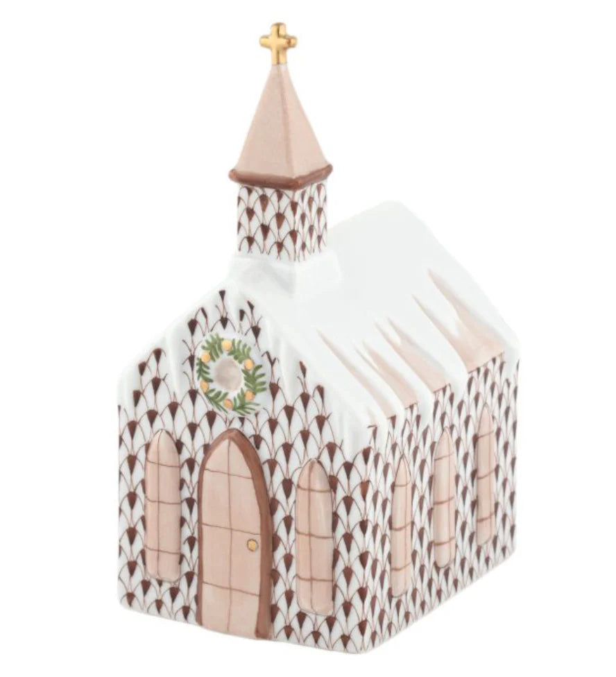 This exquisite Christmas church figurine is crafted from porcelain and hand-painted with a distinctive fish scale design. Available in nine elegant color options, it serves as a beautiful decorative piece that adds a refined touch to your holiday décor.
