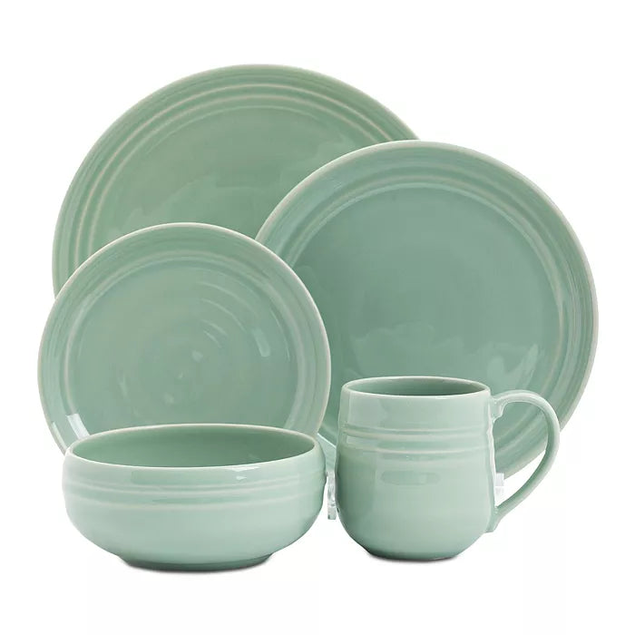 The beauty of the Basque country inspired this collection that highlights the city of Bilbao's stunning combination of modernity and patina. Featuring a soft sage hue for a fresh take on our classic coupe shapes, this set is the new neutral for all of your spring and summer dining - indoors or out. Five piece setting includes: dinner plate, dessert/salad plate, side/cocktail plate, cereal/ice cream bowl and cofftea cup.