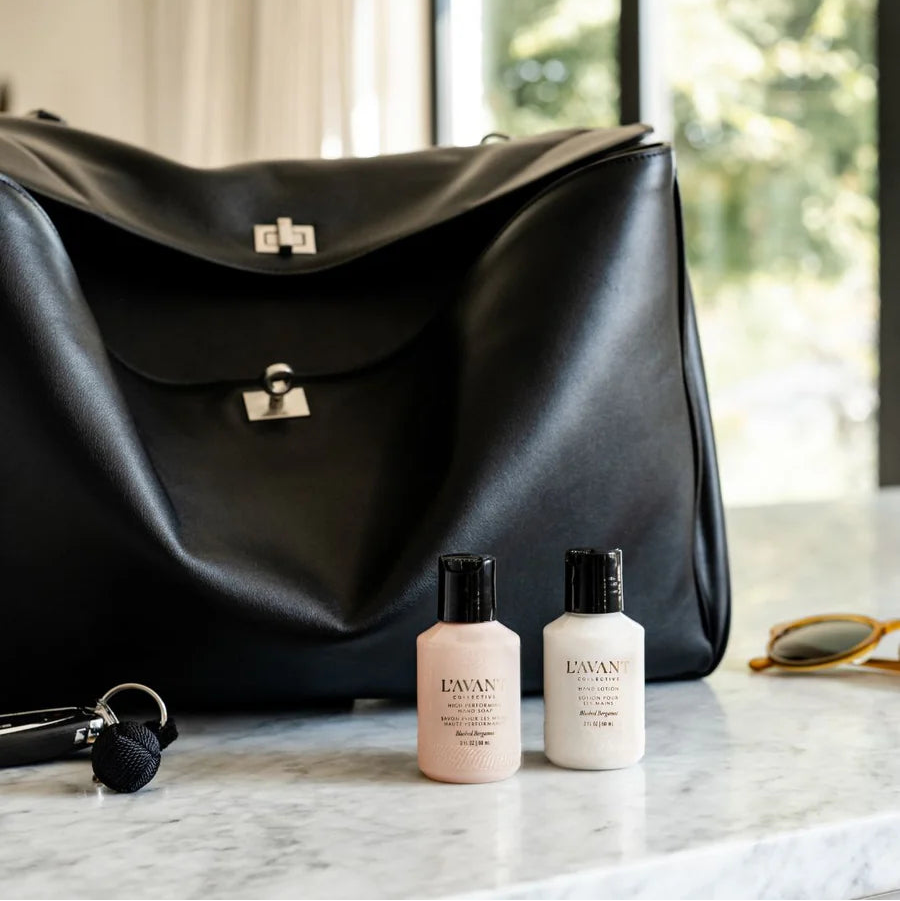 Minis for your on the go hand care needs! Indulge in a spa-like experience on the go with our Mini Hand Care Sets. These perfect pairings include a 2oz travel sized hand soap and hand lotion in either Fresh Linen, with notes of geranium, bamboo and ylang ylang, or Blushed Bergamot with notes of bergamot, orange blossom, amber and cedar.