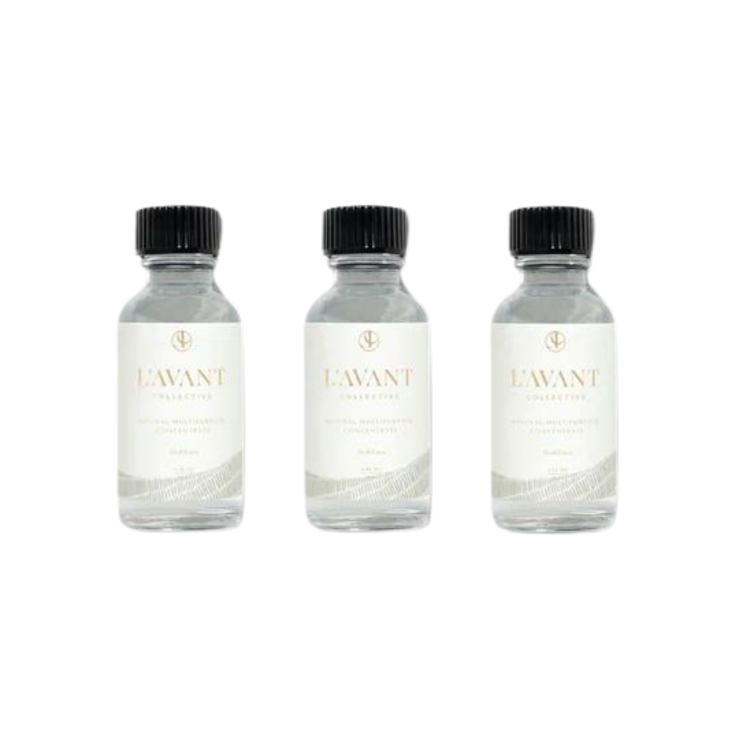 Three times the convenience. With our Multipurpose Surface Cleaner Concentrate, refilling your elegant L’AVANT 16 oz. spray bottle is a breeze. Packaged in 1 oz. eco-luxe glass bottles, going the refill route makes our powerhouse plant-based cleaner even more responsible. Less plastic waste means you’re being gentler on the environment, and this trio of beauties is easy to ship, easy to store.
