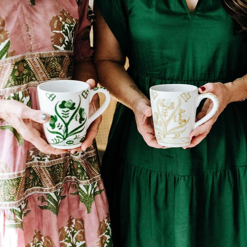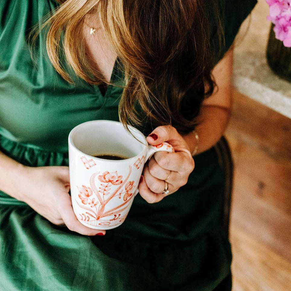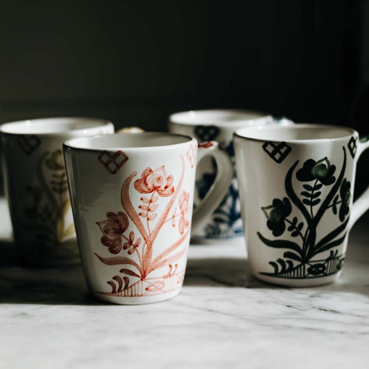 Gracefully hand-painted floral features adorn our Lisbon mug as a beautiful nod to enduring tradition. A perfect vessel for your morning cup of coffee or evening cup of tea.